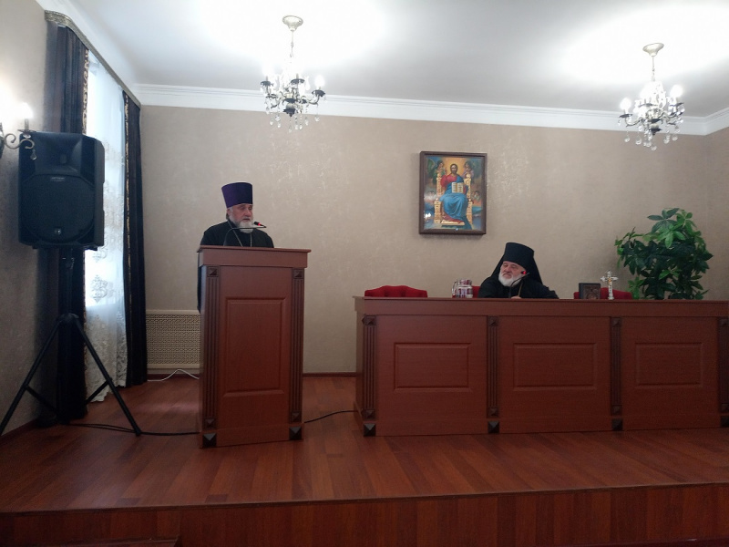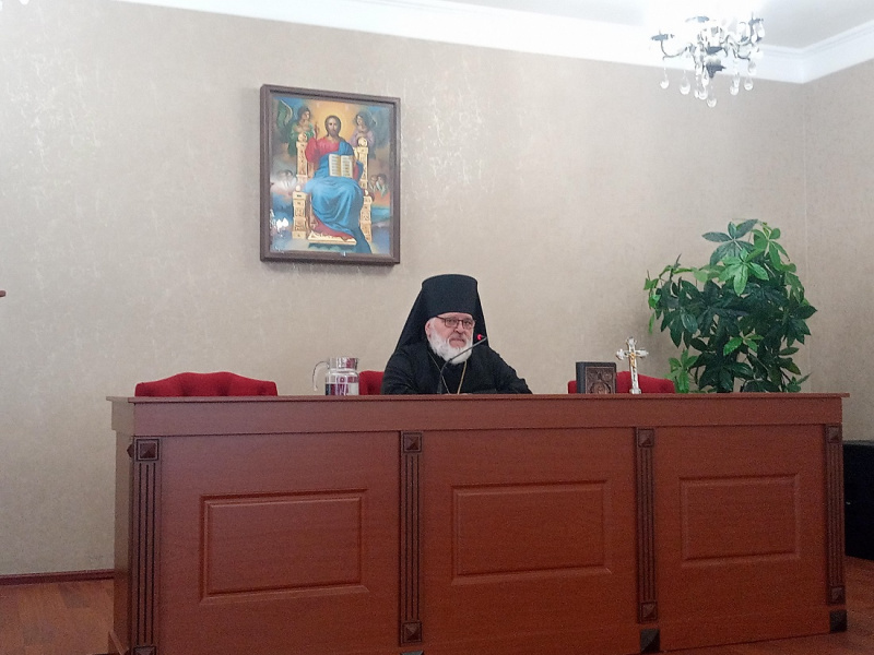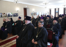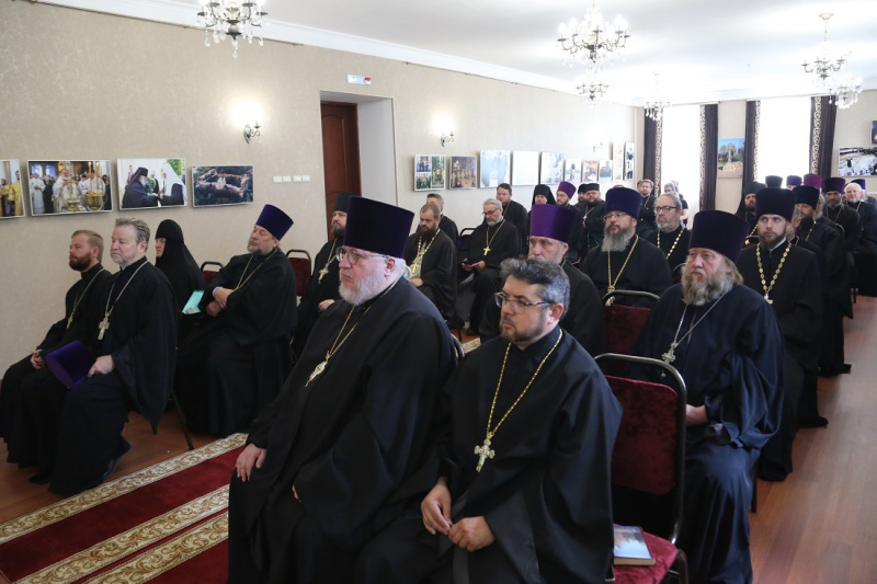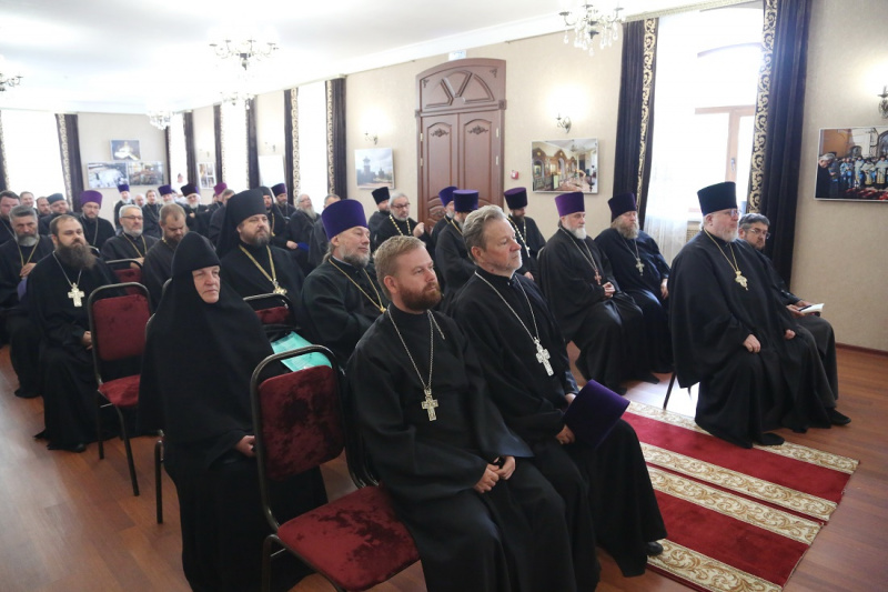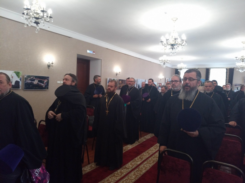 В четверг, 27 июня, в здании епархиального управления города Кузнецка состоялось собрание духовенства, под председательством правящего архиерея, Преосвященного епископа Назария. Владыка обратил внимание присутствовавших священнослужителей на основную составляющую деятельности новоучрежденных благотворительных структур: епархиального реставрационно-строительного фонда и Суворовского братства, призвав неравнодушных к активному сотрудничеству с данными организациями. Епископ Назарий поделился общими впечатлениями от своих рабочих поездок по территориям Камешкирского и Никольского благочиний, отметив факт посещения в дальнейшем и других округов, с координационными целями. Владыка призвал подведомственное духовенство к неленостному совершению богослужений на малочисленных приходах епархии, возложив контроль исполнения архиерейского распоряжения на благочинных. На собрании всем присутствовавшим был представлен новый епархиальный древлехранитель-Родионова Наталья Владимировна.