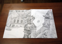 3-е место – Яроцкая Алена, 16 лет, «Иван Воронов, будущий архимандрит Псково-Печерской Лавры, раздает свой хлеб голодающим детям».