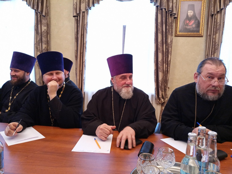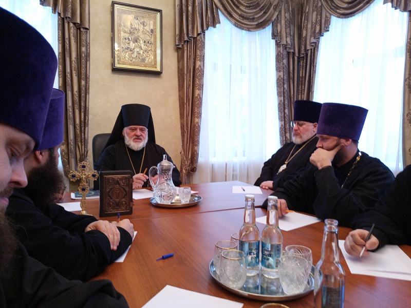 Во вторник, 19 ноября, в здании Кузнецкой епархии состоялось заседание расширенного епархиального совета, с участием благочинных округов, под председательством Преосвященного епископа Назария. Нa повестке дня рассматривался вопрос подготовки к годовому собранию духовенства, обсуждалась тематика предстоящего мероприятия. Владыка рассказал о посещении приходов на вверенной ему канонической территории и совершении в них архиерейских богослужений, поделился своим видением реального положения дел в благочиниях, оценил перспективы дальнейшего развития. Епископ Назарий затронул тему деятельности епархиального АНО "Реставрация и строительство", направленного на созидание храмов и сохранения их в надлежащем состоянии, призвав всех присутствовавших к неленостному и плодотворному служению Церкви Христовой.