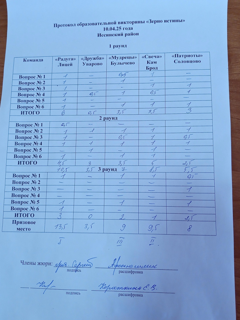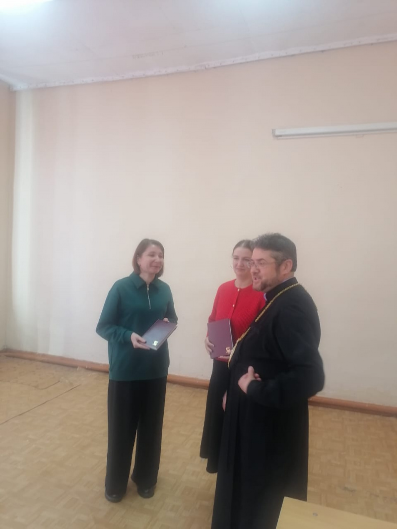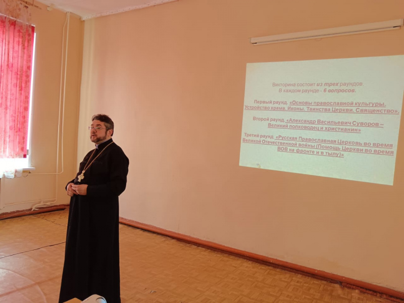 В четверг, 10 апреля, в Иссинском благочинии прошел отборочный тур (региональный этап) епархиальной интеллектуальной викторины "Зерно истины". Для участия в мероприятии были поданы заявки от пяти команд районных образовательных учреждений. Жюри конкурса представили: директор МБОУ ДО ДШИ Сатыренко Татьяна Борисовна, ведущий эксперт Управления образования Иссинского района Коросткина Екатерина Владимировна, благочинный округа протоиерей Сергий Афонюшкин. По итогам игры призовые места распределились в следующем порядке: I место - команда "Радуга" (Лицей р.п. Исса); II место - команда "Свеча" (с. Каменный Брод); III место - команда "Мудрецы" (с. Булычево). Призеры и участники мероприятия получили памятные призы от благочинного округа. Победители интеллектуального состязания смогут проявить себя на уровне епархиальной викторины, которая пройдет 24 апреля, в городе Кузнецке. Протоиерей Сергий Афонюшкин обращается со словами признательности к исполняющей обязанности начальника Управления образования администрации Иссинского района Нехорошевой Юлии Алексеевне, благодаря ее за поддержку епархиального мероприятия и личное участие в организации отборочного этапа интеллектуальной игры.