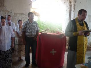 «Хочу всех жителей села поздравить с праздником святых первоверховных апостолов Петра и Павла, Мы видим, в каком состоянии находится храм, Владыка принял решение открыть неподалеку в школе молитвенную комнату. Прошу вас помочь старосте прихода в созидании этой комнаты », — сказал отец Евгений