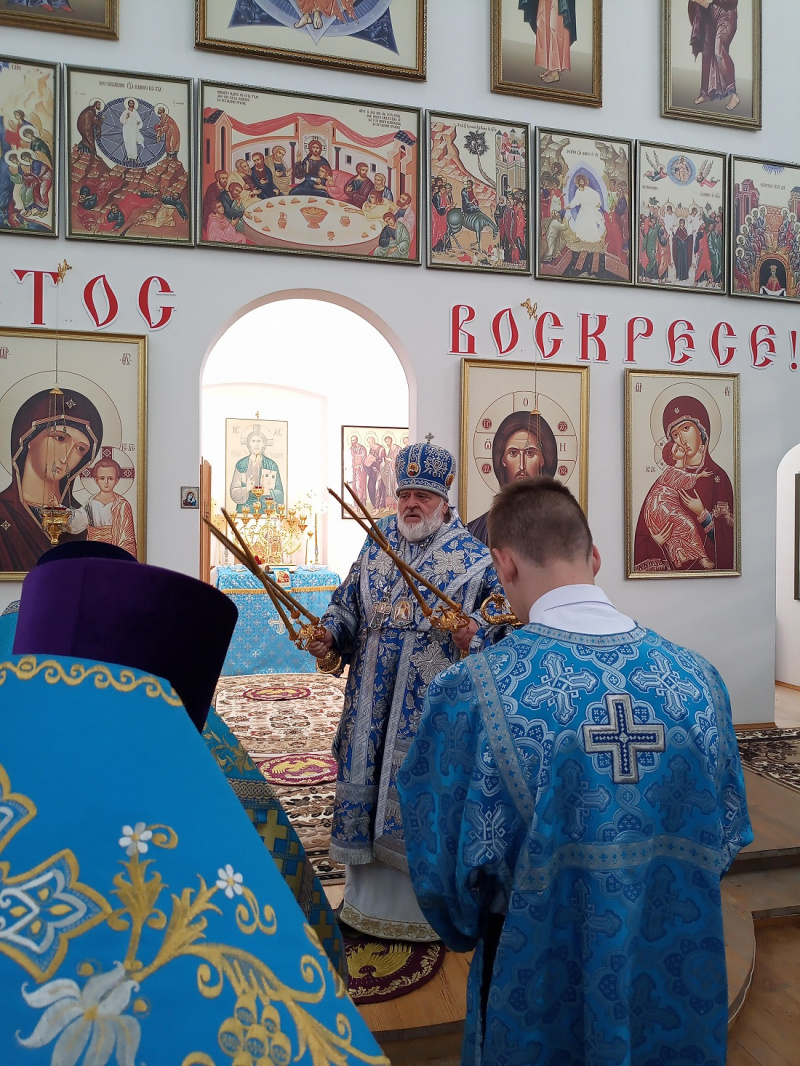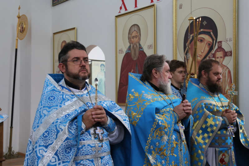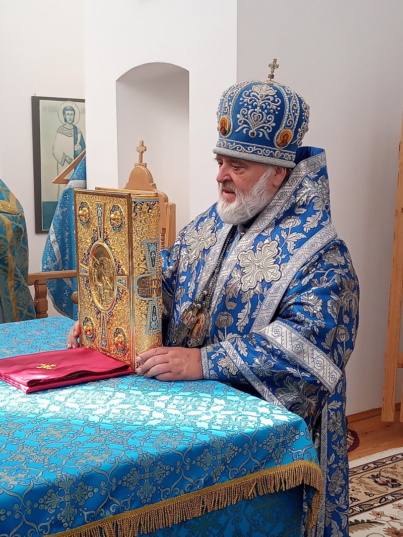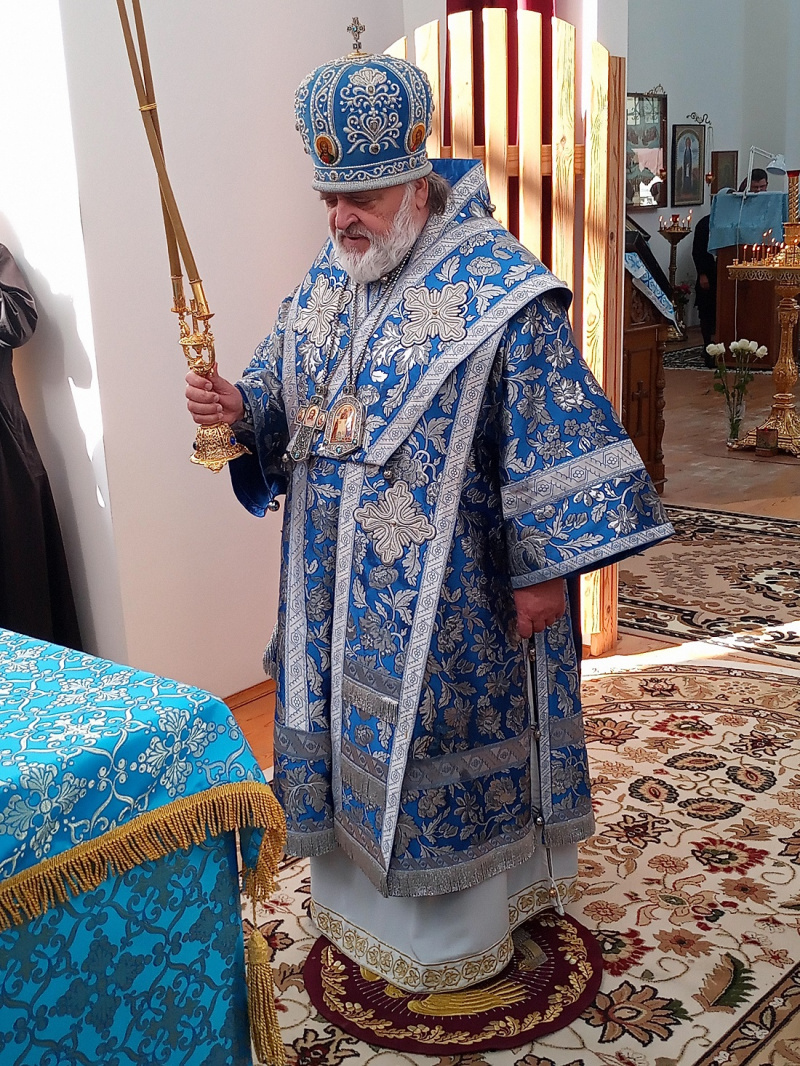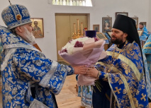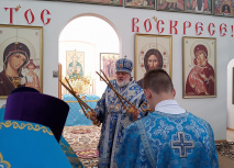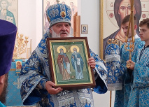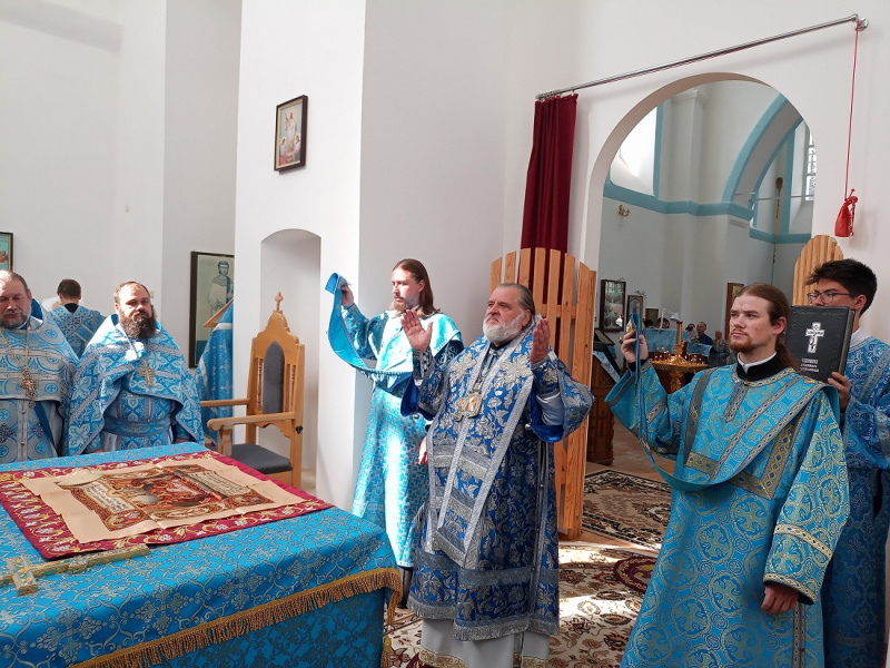 В завершение богослужения было совершено славление Владимирской иконе Божией Матери, а затем епископ Назарий поздравил верующих с праздником и обратился к пастве с архипастырским словом.