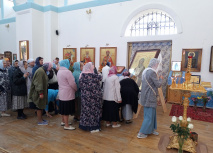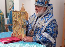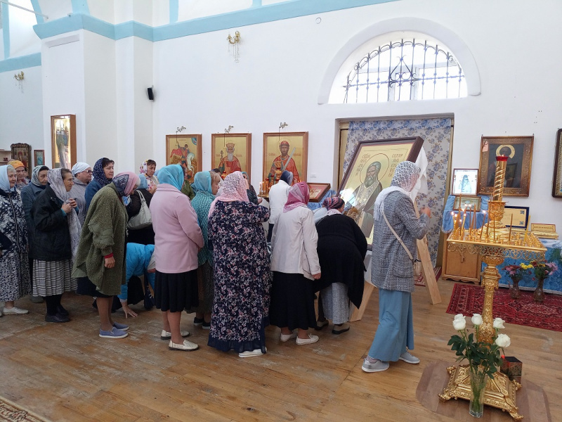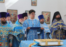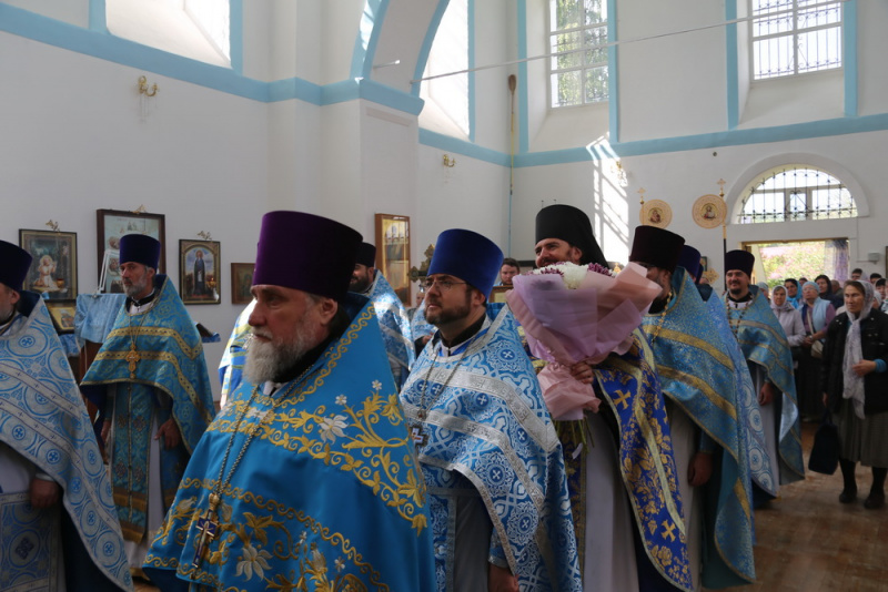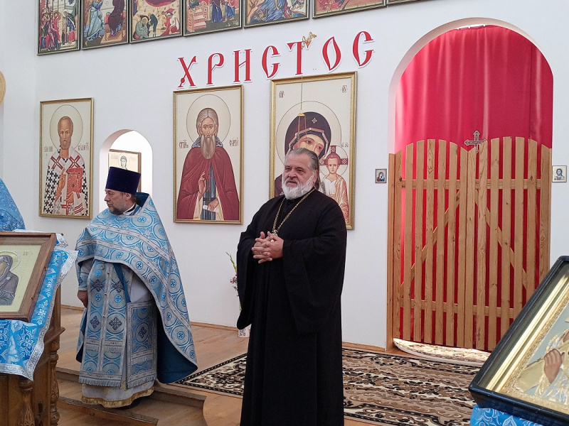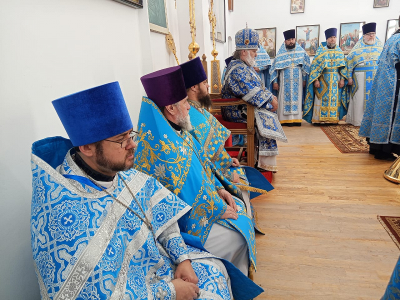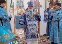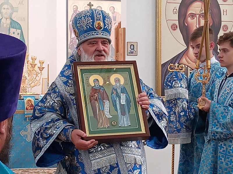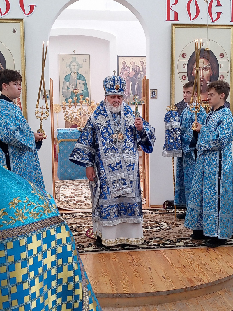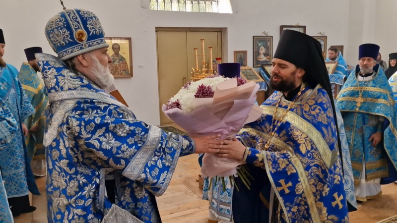 В завершение богослужения было совершено славление Владимирской иконе Божией Матери, а затем епископ Назарий поздравил верующих с праздником и обратился к пастве с архипастырским словом.