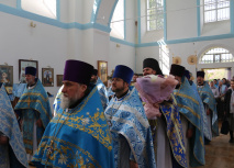 Его Преосвященству сослужило духовенство Кузнецкой епархии.