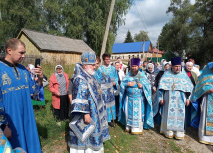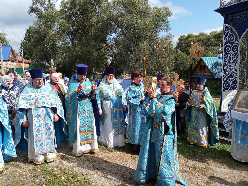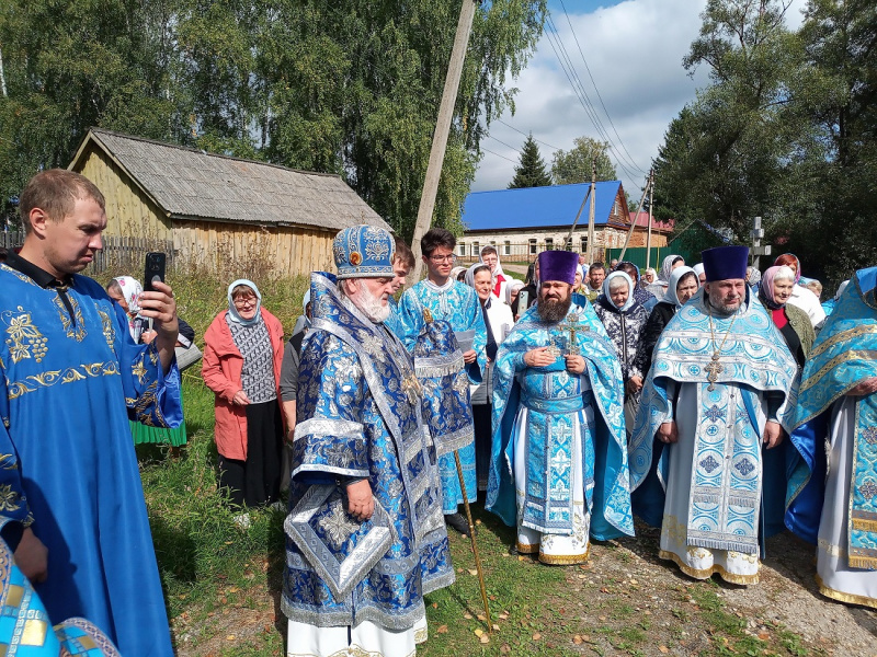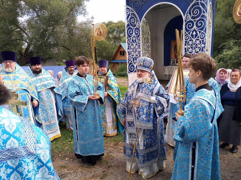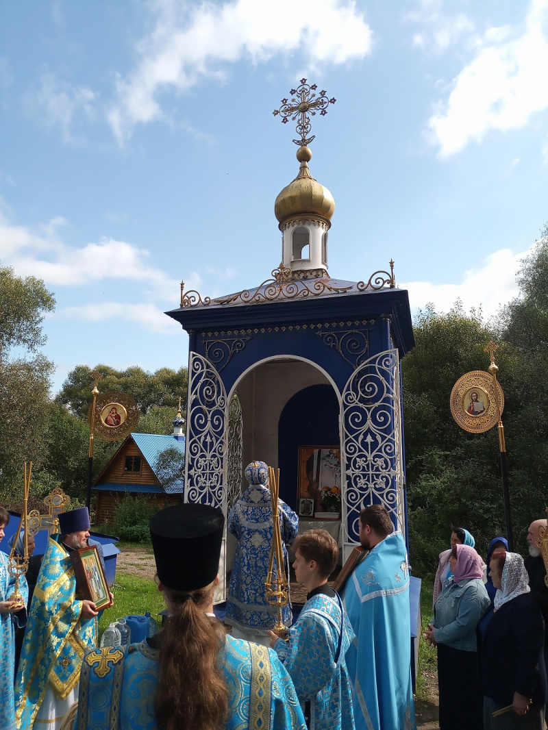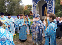По окончании Литургии состоялся традиционный крестный ход к источнику, где владыка Назарий совершил водосвятный молебен.