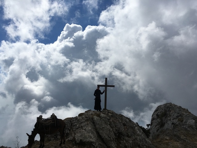 - Кульминацией стало наше восхождение на Святую гору. Это трудный путь, проходящий по крутым горным тропинкам. Мы проделали его в несколько этапов, с остановками. С очередной из них вышли днем, а дошли до следующего этапа уже в темноте. Шли, уже не видя, где мы находимся, и вдруг заметили вдали огонек. Это оказалась лампадка в Панагии — месте, куда когда-то восходила сама Богородица. Теперь там храм и небольшой домик для паломников. Мы постучались в него, и дверь, несмотря на поздний час, сразу же открылась. Молодой человек по имени Максим, встретивший нас, оказался паломником из Санкт-Петербурга. Он рассказал, что его товарищи все давно заснули, собирался лечь и он, не предполагая, что так поздно кто-то может прийти по горным тропам. Но, по его собственному признанию, что-то мешало ему спать, и он сам себя в удивлении спрашивал: «Кого же я жду?». Оказалось, нас. В этом святом месте и тут не обошлось без Божиего промысла. Там мы и переночевали. Наутро пошел ливень, но мы все же продолжили подъем. Всего же путь занял шесть с половиной часов.