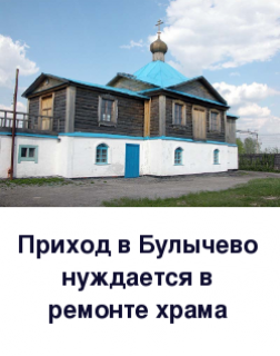Обращаемся к Вам с просьбой оказать посильную помощь в деле проведения строительных работ в храме Владимирской иконы Божией Матери с.Булычево . Предстоит сделать немало . Так случилось что местная приходская община вынуждена молиться в стеснении и духоте в подвальном помещении храма где царит невыносимая духота поскольку храм пришёл в запустение и признан аварийным в нём не проводилось ни каких ремонтных работ со дня постройки в 90 годы а в силу тех или иных обстоятельств с населением села где проживает около 1000 человек не проводилась ни какая духовная и просветительская работа и прибывший недавно новый настоятель храма столкнулся с тем что община катастрофически маленькая и посещаемость служб соответственно тоже очень маленькая и храм ремонтировать средств нет а также нет средств на миссионерскую работу среди местного населения! Надеемся, что наша просьба о помощи будет услышана. Будем рады любой сумме, любой посильной лепте. Имена жертвователей будут поминаться за Божественной литургией . «ДА НЕ ОСКУДЕЕТ РУКА ДАЮЩЕГО!».