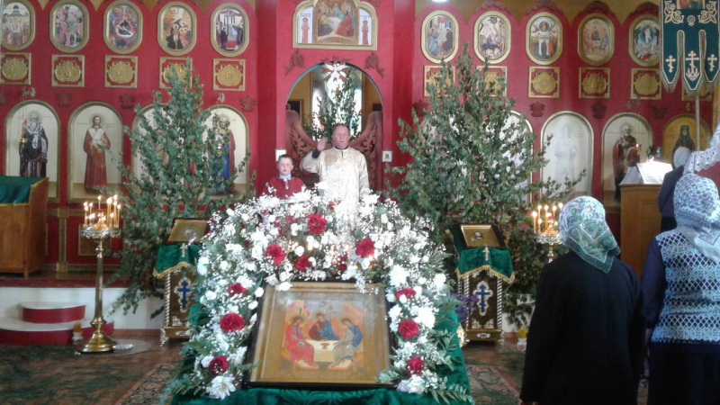 27 мая в воскресенье, в Преображенском храме р.п Исса мы отмечали праздник Троицы. Этот праздник приходится на пятидесятый день после Пасхи. В Пасху мы празднуем освобождение человечества от смерти, а в Троицу- жизнь, данную Богом всему сущему. Цвет праздника Троицы- изумрудно-зеленый. Это оттенок свежей сочной травы или листвы, не успевшей устать от тяжелой пыли. Изумрудным облаком светится храм изнутри березовыми веточками, которые принесли прихожане, пол церкви густо засыпан травой. Праздник христианской Пятидесятницы заключает в себе двойное торжество: во славу Пресвятой Троицы и во славу Пресвятого Духа, сошедшего на апостолов и запечатлевшего новый вечный завет Бога с человеком. На следующий день после Пятидесятницы, мы прославляем третье лицо Святой Троицы- Святого Духа. Это тихий и немноголюдный праздник. Иконные кивоты в этот день украшаются бумажными голубками. Трогательно и красиво богослужение в праздник Святой Троицы. Украшен храм, батюшка Иоанн облачен в зеленую ризу, пахнет травой и свежей зеленью, коленопреклоненно читают прихожане особые молитвы св. Василия Великого. А на дворе почти лето- напоминание о том прекрасном и глубоком"лете Господнем", что обещал Иисус Христос праведникам.