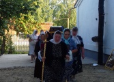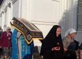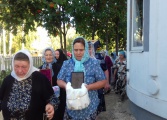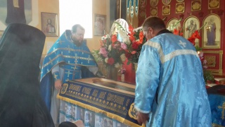 29 августа вечером в нашем храме совершился чин Погребения Пресвятой Богородицы. Этот чин представляет собой довольно продолжительное , но очень красивое богослужение. После великого славословия при пении заключительного" Святый Боже"( как при выносе Креста) батюшка Иоанн поднимает плащаницу, и мы вокруг храма совершаем крестный ход с плащаницей Пресвятой Богородицы, словно похоронной процессией с умилительным протяжным пением. Обычно на Крестный ход стекается очень много прихожан, чтобы принять участие в этом скорбном шествии за святой плащаницей Пречистой Девы. Идут дети, идут старики и молодежь. Каждый старается пронести свою зажженную свечу, оберегая от ветра. По окончании крестного хода отец Иоанн на входе держит святую Плащаницу так, что каждый может пройти под ней, прося у Пречистой прощения и заступления. Так прост и так светел образ Пренепорочной Богородицы и таким недостижимо высоким является Свет Ее для нас, недостойных?! Но благосклонно внимает Царица Небесная молитвам грешников кающихся, и не устрашат нас беды, ни скорби, ни жизнь и ни смерть, если решимся мы в искреннем желании исправления и спасения прибегнуть к заступничеству Пречистой Матери Божией. взывая: " Не отступим Владычице, от Тебе: Твоя бо раби спасаеши присно от всяких лютых". Аминь
