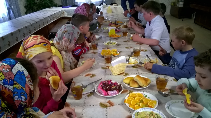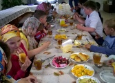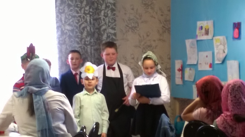 28 апреля, в день Светлого Христова Воскресения, в административном здании при храме Преображения Господня р.п. Исса состоялось детское театрализованное представление, организованное силами воспитанников воскресной школы. Педагог, Ольга Александровна Игошина представила интересную и познавательную христианскую пьесу-спектакль под названием "Тюльпан и нарцисс". Ребята и взрослые с увлечением следили за героями "детской театральной сцены". Затем все присутствующие получили сладкие подарки и смогли попробовать вкусные угощения за праздничным столом.