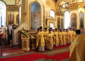 12 сентября, Святая Церковь молитвенно почитает перенесение мощей благоверного князя Александра Невского. В сей день исполняется семь лет со дня архиерейской хиротонии митрополита Пензенского и Нижнеломовского Серафима, временно управляющего Кузнецкой епархией. По благословению Высокопреосвященнейшего владыки, благочинный Иссинского округа протоиерей Сергий Афонюшкин, принял участие в торжественных богослужениях, прошедших в Успенском кафедральном соборе города Пензы. Митрополиту Серафиму и Преосвященнейшему епископу Сердобскому и Спасскому Митрофану, сослужили представители духовенства Пензенской и Кузнецкой епархий. По окончании Божественной Литургии, управляющий митрополией принимал поздравления с "Архиерейской Пятидесятницей" от священнослужителей, а также от представителей Пензенской областной администрации.
