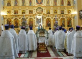 8 января, в день празднования Собора Пресвятой Богородицы, в Вознесенском кафедральном соборе города Кузнецка Божественную Литургию совершил митрополит Пензенский и Нижнеломовский Серафим, временно управляющий Кузнецкой епархией. По благословению Высокопреосвященнейшего владыки, в богослужении приняли участие благочинные Кузнецкой епархии, в том числе протоиерей Сергий Афонюшкин, возглавляющий Иссинский благочиннический округ. Духовенство поздравило правящего архиерея с праздником Рождества Христова, получив архипастырское благословение на благодатные и спасительные труды во славу Божию.