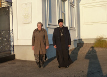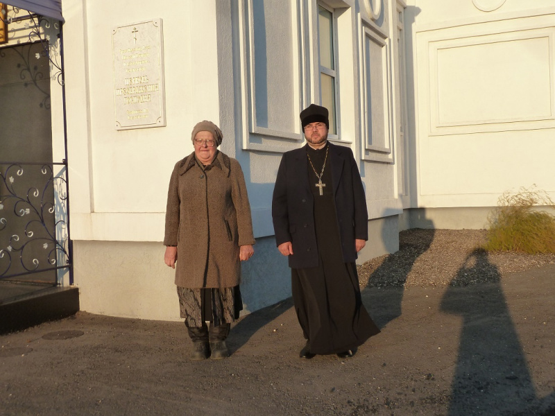На фото: настоятель Преображенского храма протоиерей Сергий Афонюшкин с прихожанкой, Марией Константиновной Горюткиной.