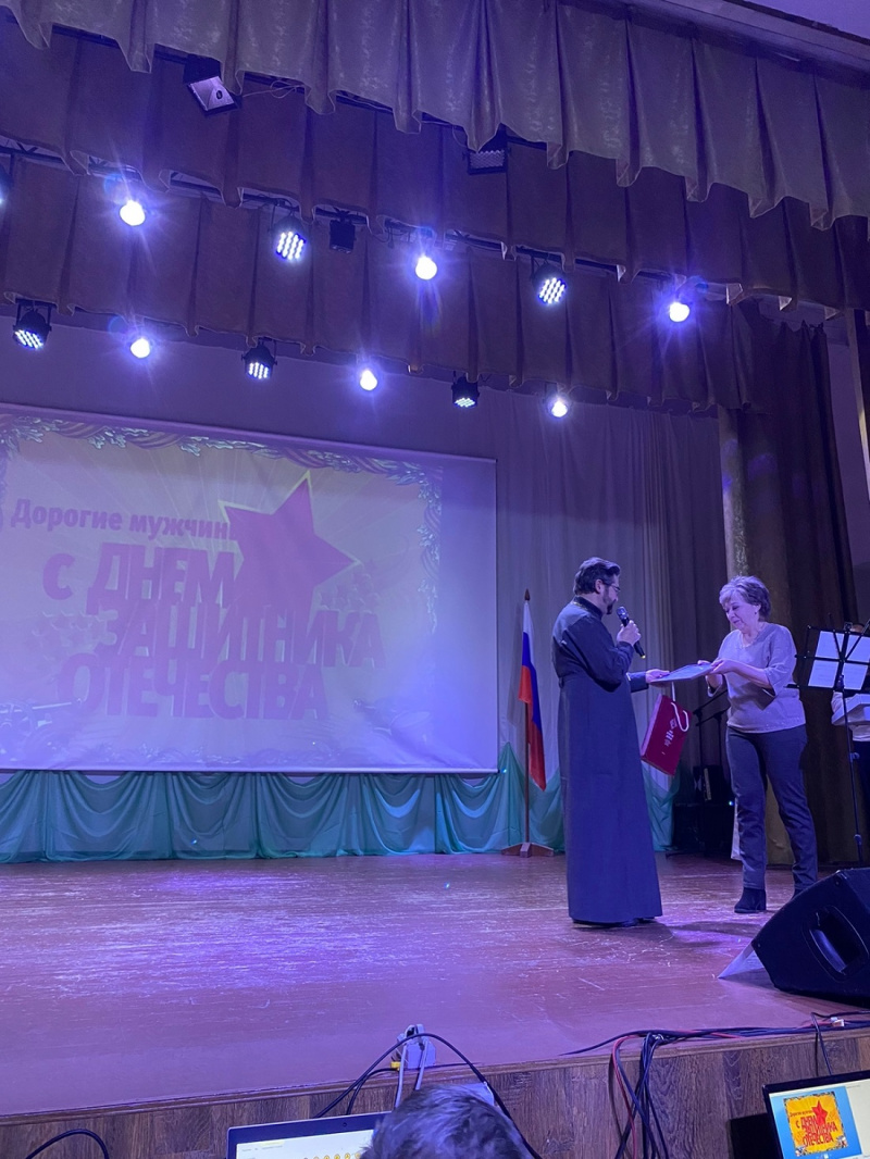 В среду, 22 февраля, благочинный Иссинского округа протоиерей Сергий Афонюшкин посетил МБУК "МЦРДК" р.п. Исса. Священнослужитель поздравил жителей поселка с Днем защитника Отечества, а затем присутствовал на праздничном концерте, организованном в честь торжественного события. Приветственное слово в адрес собравшихся, огласил глава администрации МО "Рабочий поселок Исса" Буланов Александр Иванович. Протоиерей Сергий вручил в этот день благодарственное письмо, от лица настоятеля, а также приходского совета Преображенского храма, исполнительному директору ООО "Иссинский КСМ" Булатову Рушану Рафиковичу.