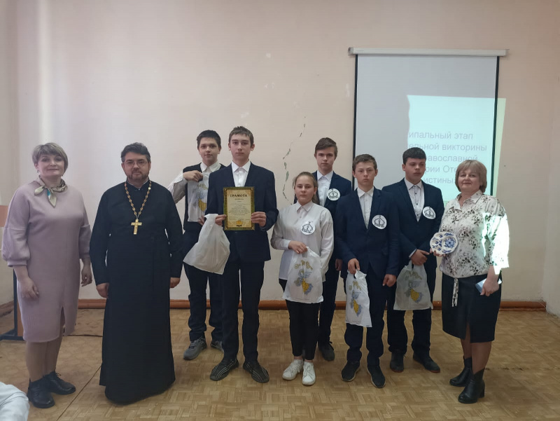 Во вторник, 11 апреля, в Иссинском благочинии прошел региональный этап Епархиальной православной интеллектуальной викторины "Зерно истины". В познавательном мероприятии приняли участие пять команд образовательных учреждений района. По итогам состязания призовые места распределились следующим образом: III место- команда "Пламя" МБОУ СШ с. Соловцово; II место- команда "Радуга" МБОУ Лицей р.п. Исса имени Н.Н. Гаврилова; I место- команда "Свеча" МБОУ СШ с. Каменный Брод. Победители и участники интеллектуальной игры получили грамоты и памятные подарки. Благочинный Иссинского округа протоиерей Сергий Афонюшкин, обращается со словами признательности к начальнику Управления образования администрации Иссинского района Имамовой Александре Дмитриевне, благодаря за помощь в организации викторины и поддержку инициатив Кузнецкой епархии.