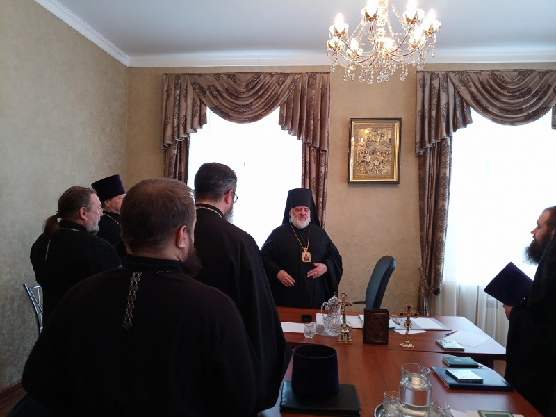 Во вторник, 20 февраля, в Кузнецкой епархии состоялось заседание Архиерейского совета, под председательством Преосвященного Назария, епископа Кузнецкого и Никольского. Владыка озвучил поставленные задачи на текущий год, затем благочинные представили план реализации духовных и хозяйственных инициатив в своих округах, которые были скорректированы правящим архиереем. Епископ Назарий вынес на повестку мероприятия вопрос создания Фонда строительства, реставрации и поддержки храмов Кузнецкой епархии, а также благословил устав новоучрежденного "Суворовского Братства", в связи с рассматриваемым в настоящее время вопросом о возможной канонизации Александра Васильевича Суворова, легендарного русского полководца и патриота. Владыка проинформировал священнослужителей об открытии епархиального паломнического центра, выразив желание подготовки компетентных православных гидов из числа сотрудников центра, которые впоследствии заменят светских экскурсоводов, бывающих невоцерковленными и как следствие несостоятельными в церковных вопросах. Правящий архиерей отметил тот факт, что в Кузнецкой епархии, а также на территории Пензенской митрополии есть немало благословенных и реликтовых мест, их необходимо также посетить, отдавая приоритет не только общеизвестным святыням Церкви. Епископ Назарий проинформировал собравшихся о принятии на работу нового древлехранителя, в обязанности которого входит систематизация храмов, являющихся памятниками архитектуры и объектами культурного наследия на епархиальной территории, наблюдение за их надлежащим состоянием.